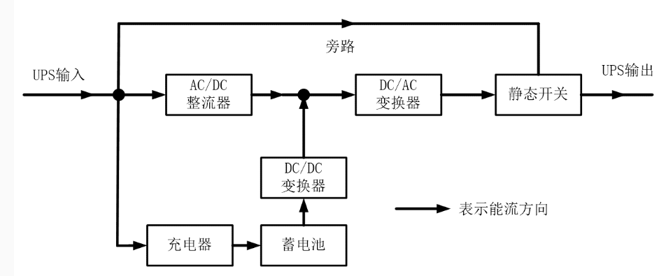 当市电正常为380/220VAC时,直流主回路有直流电压,供给DC-AC交流逆变器,输出稳定的220V或380V交流电压,同时市电经整流后对电池充电。当任何时候市电欠压或突然掉电,则由电池组通过DC-DC变换器向直流回路馈送电能,从而维持UPS输出稳定的交流电压不间断。